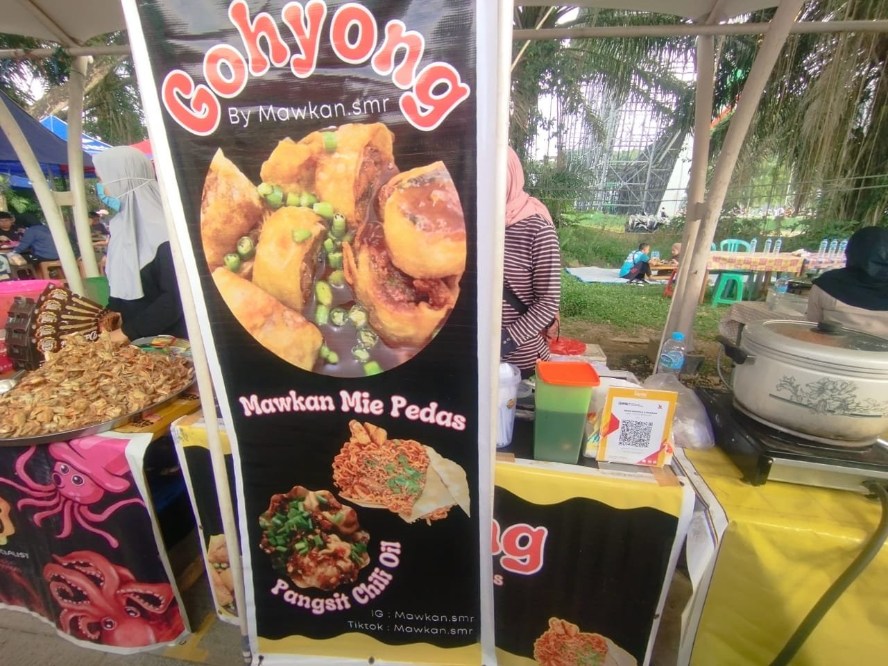 Hidangan ini mungkin masih sulit ditemui di Samarinda. Namun, kudapan khas akulturasi Tionghoa dan Betawi tersebut, justru hadir di sini. Makanan ini dikenal dengan tekstur luarnya yang renyah dan bagian dalamnya yang lembut serta gurih. Dilengkapi pula dengan saus asam manis beserta potongan cabe hijau yang melengkapi kekayaan rasa jajajan tersebut. Untuk menikmati seporsi gohyong, pengunjung dapat mengeluarkan gocek sekitar Rp25 ribu.
