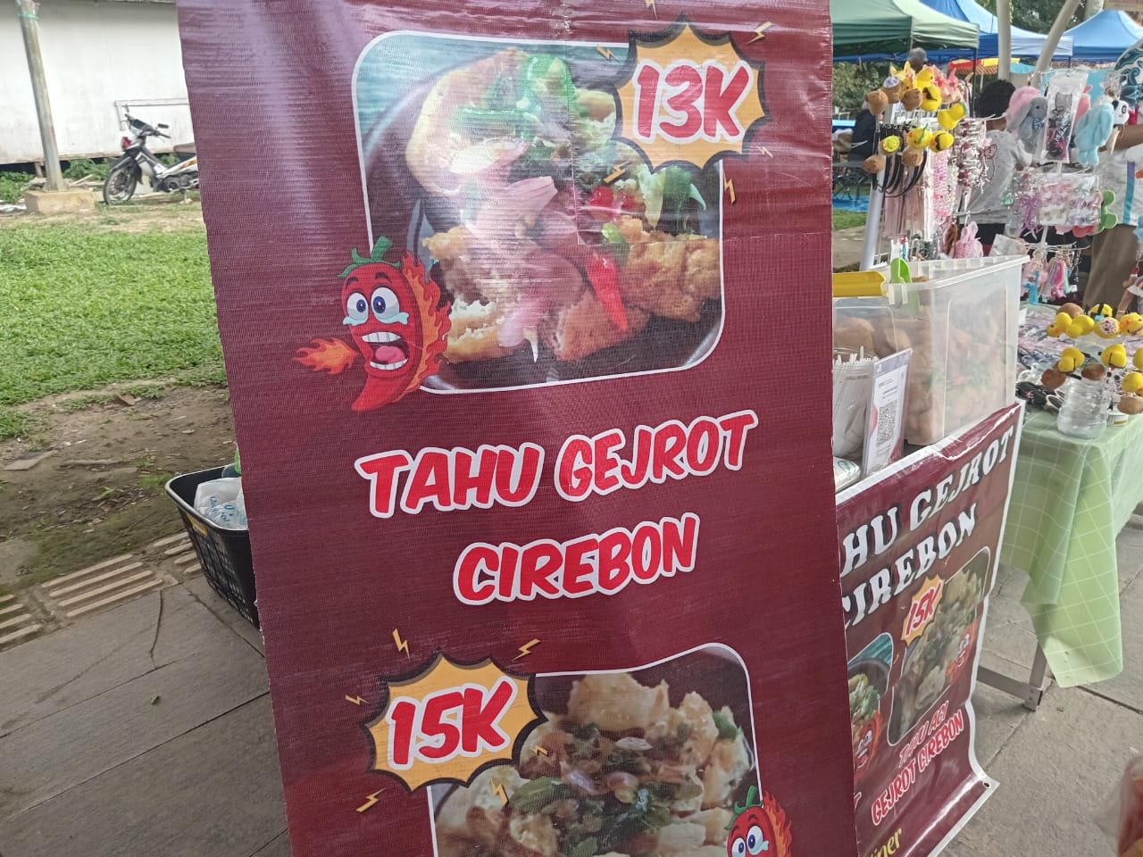 Makanan khas Cirebon ini pun ikut meramaikan tenant di wisata belanja. Kuah manis, asam, dan pedas ini menyerap ke dalam tahu goreng yang mampu menggoyang lidah. Untuk harga, satu porsi nya dapat dibeli senilai Rp13 ribu sampai Rp15 ribu.