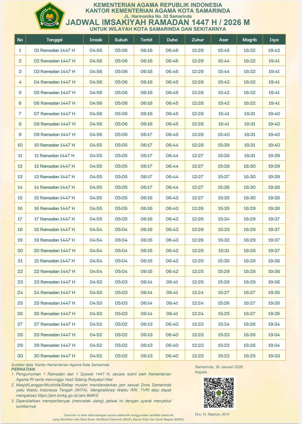 Kaltim.akurasi.id, Samarinda – Pemerintah melalui Kementerian Agama (Kemenag) resmi menetapkan 1 Ramadan 1447 Hijriah jatuh pada Kamis, 19 Februari 2026. Penetapan tersebut menjadi sinyal bagi umat muslim dalam menjalankan ibadah puasa selama Ramadan.