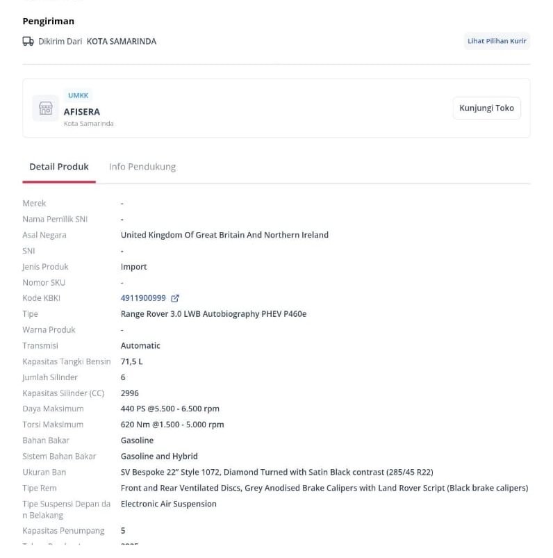 Setelah berbagai polemik tersebut, tim Akurasi.id juga melakukan pengecekan terkait perusahaan penyedia, CV Afisera di e-katalog penyedia barang. Dalam katalognya terdapat pengadaan barang mobil berjenis Range Rover 3.0 LWB Autobiography PHEV P480e seharga Rp 8,5 miliar.