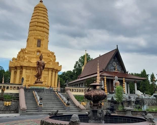Dibangun di atas lahan 2,5 hektar di Jalan MT Haryono, kamu bisa melihat berbagai bangunan arsitektur khas Thailand yang dipadukan dengan relief Jawa. Serta patung Budha berukuran besar yang megah.